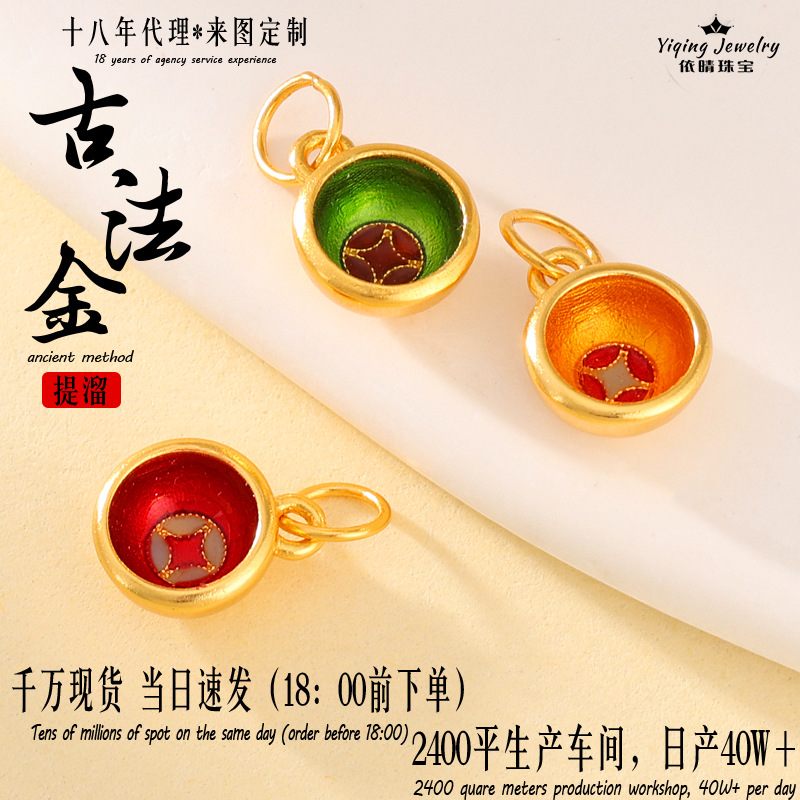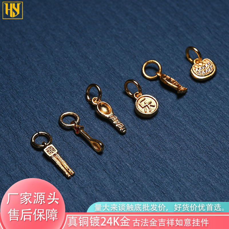 Copper Plated with 24K Gold DIY Jewelry Accessories Pendant Spoon Fortune Bowl Chopsticks New Chinese Style Hanging Ornament Small Gold Ornaments