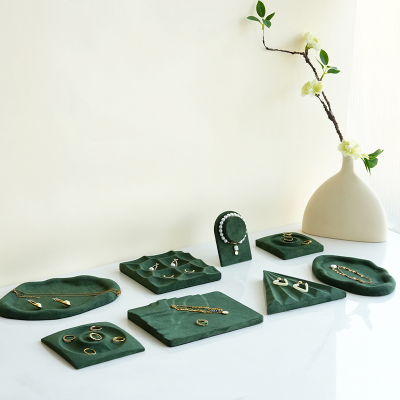 Jewelry Display Stand Retro Forest Green Earrings Ring Bracelet Viewing Pallet Counter Jewelry Display Tray Photo Props