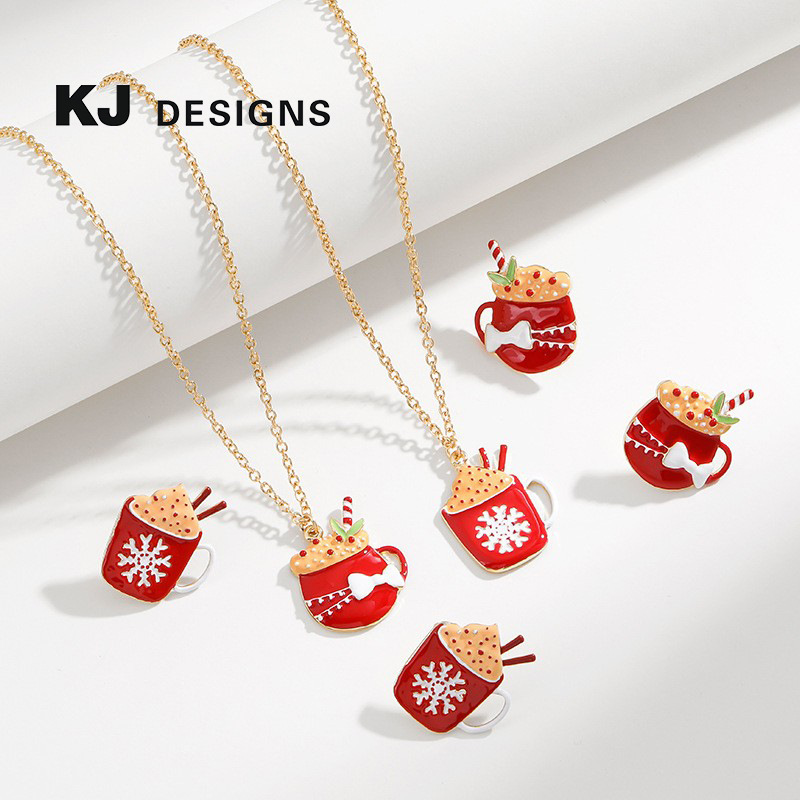 Kenjie Original Design Christmas Snowflake Oil Drop Pendant Combination Set Women's European and American Cross-border Cup Necklace