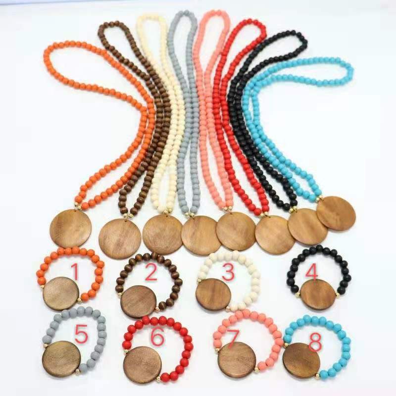 Factory wholesale beaded wooden beads necklace bracelet suit creative personalized blank disc pendant chain