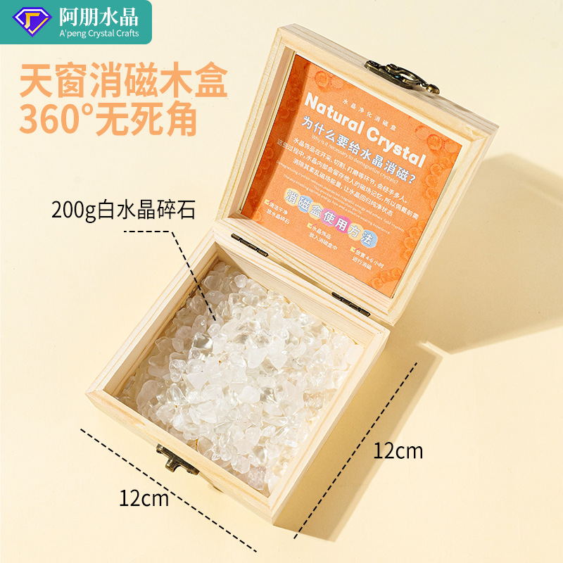 Natural Crystal White Crystal Demagnetizing Stone Glass Skylight Wooden Box Demagnetizing Bowl Bracelet Jewelry Storage Box Decorative Ornaments