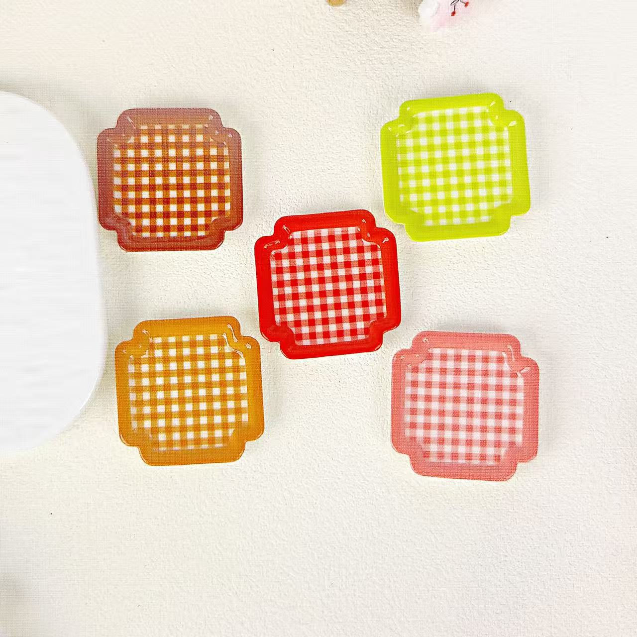 Cute Plaid Pinchable Dinner Plate Cartoon Resin Accessories DIY Cream Glue Hairpin Small Pendant Shoe Buckle Handmade DIY
