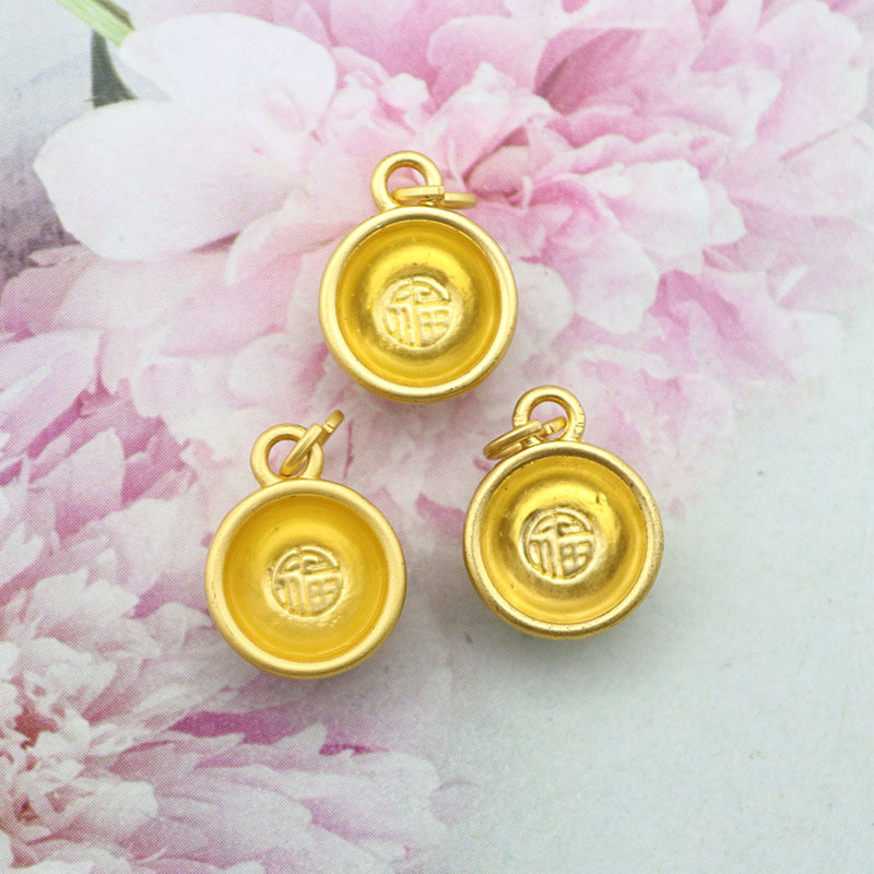 Color-Preserving Ancient Sand Gold Jewelry Accessories DIY Ancient Gold Brush Small Blessing Bowl Pendant Bracelet Bracelet Creative Pendant