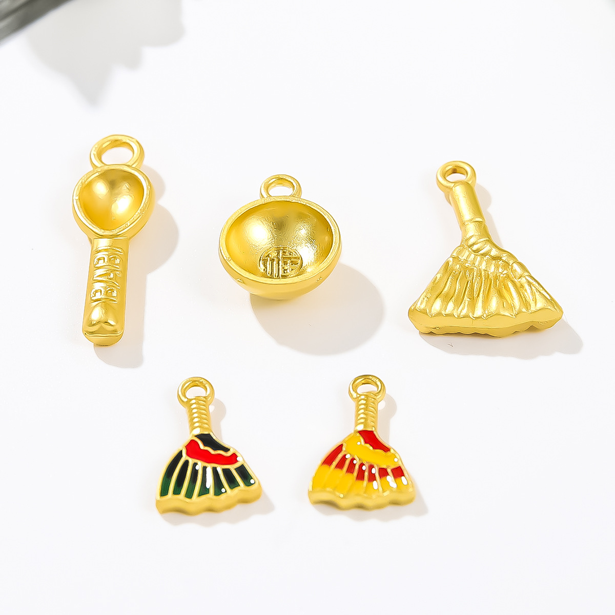 High Color Retention Ancient Gold Broom Spoon Bowl DIY Alloy Bracelet Necklace Pendant Jewelry Accessories Material Wholesale