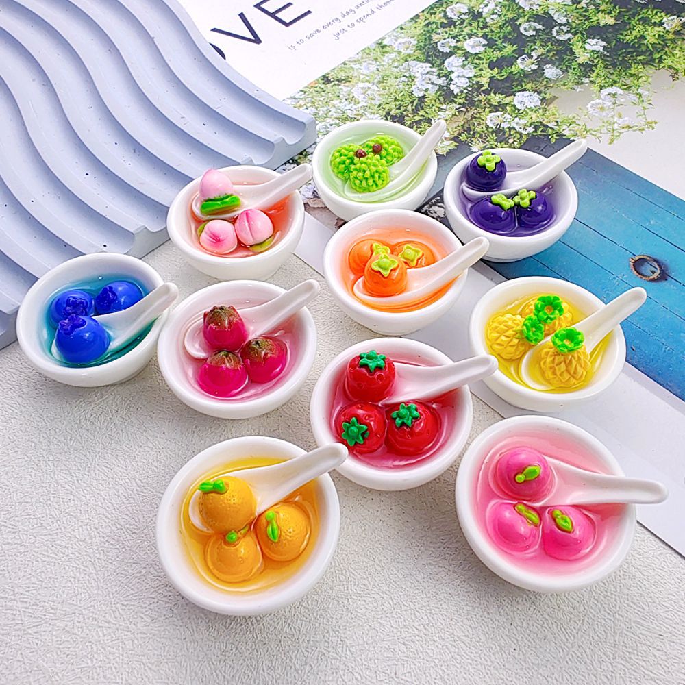 Three-dimensional fruit dumpling bowl resin accessories cream glue diy pendant hairpin micro landscape ornaments car pendant batch