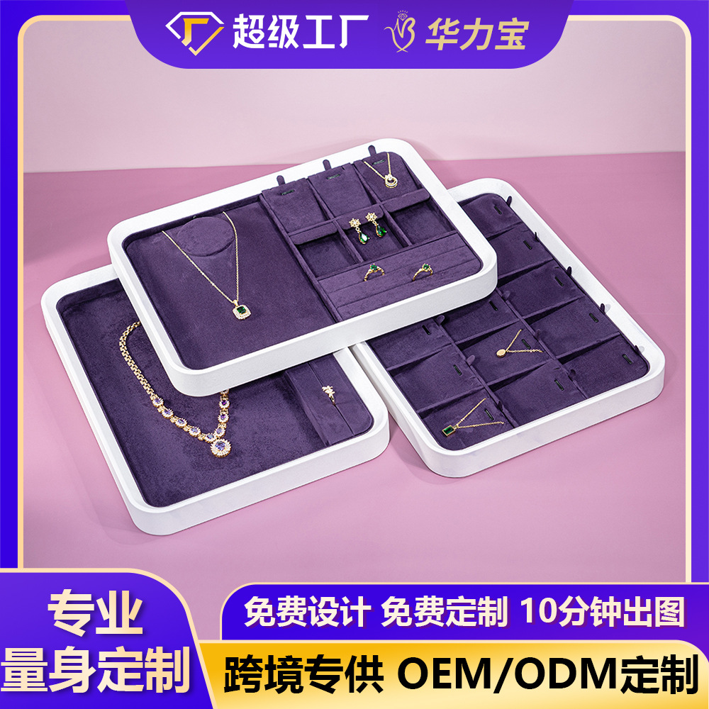 Customized Purple Live Broadcast Necklace Display Stand Microfiber High-End Jewelry Display Tray Counter Ring Bracelet Display Tray