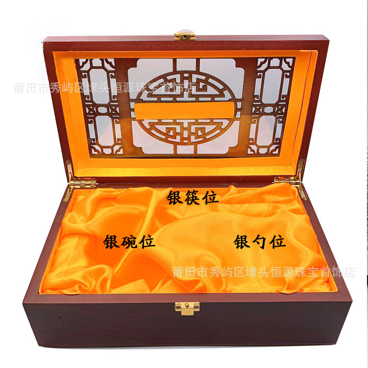 Silver Chopsticks Silver Spoon Silver Bowl Box Carved Wooden Silver Jewelry Packaging Box Gift Box Tableware Box Jewelry Packaging Box