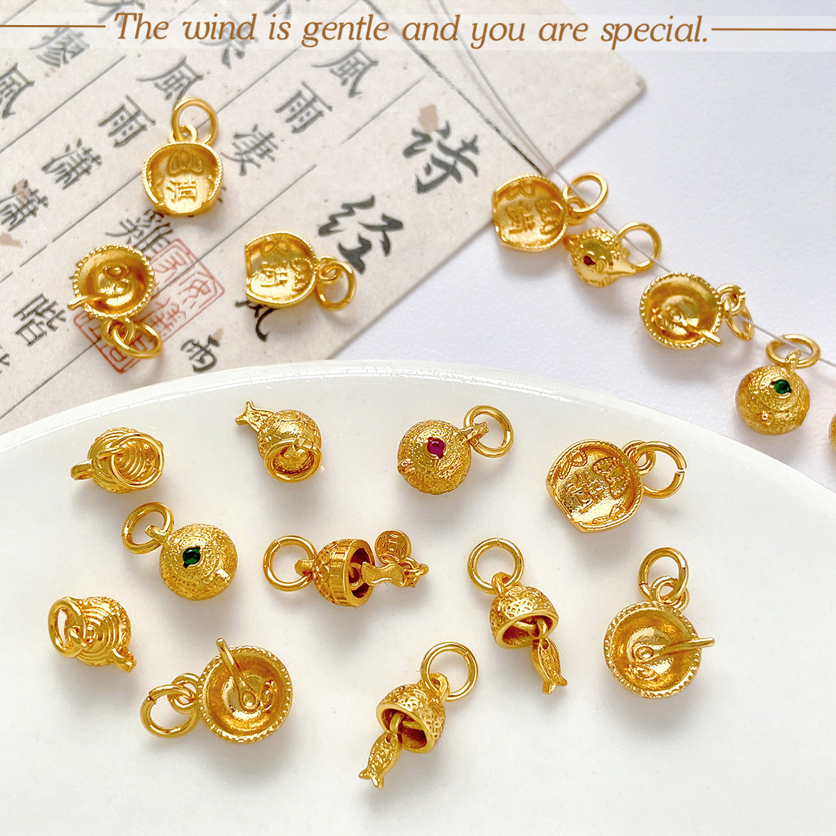 High Color Retention Bowl Handle Pot Wine Pot Annual Fish Bell Pendant DIY Bracelet Necklace Ancient Gold Weaving Accessories