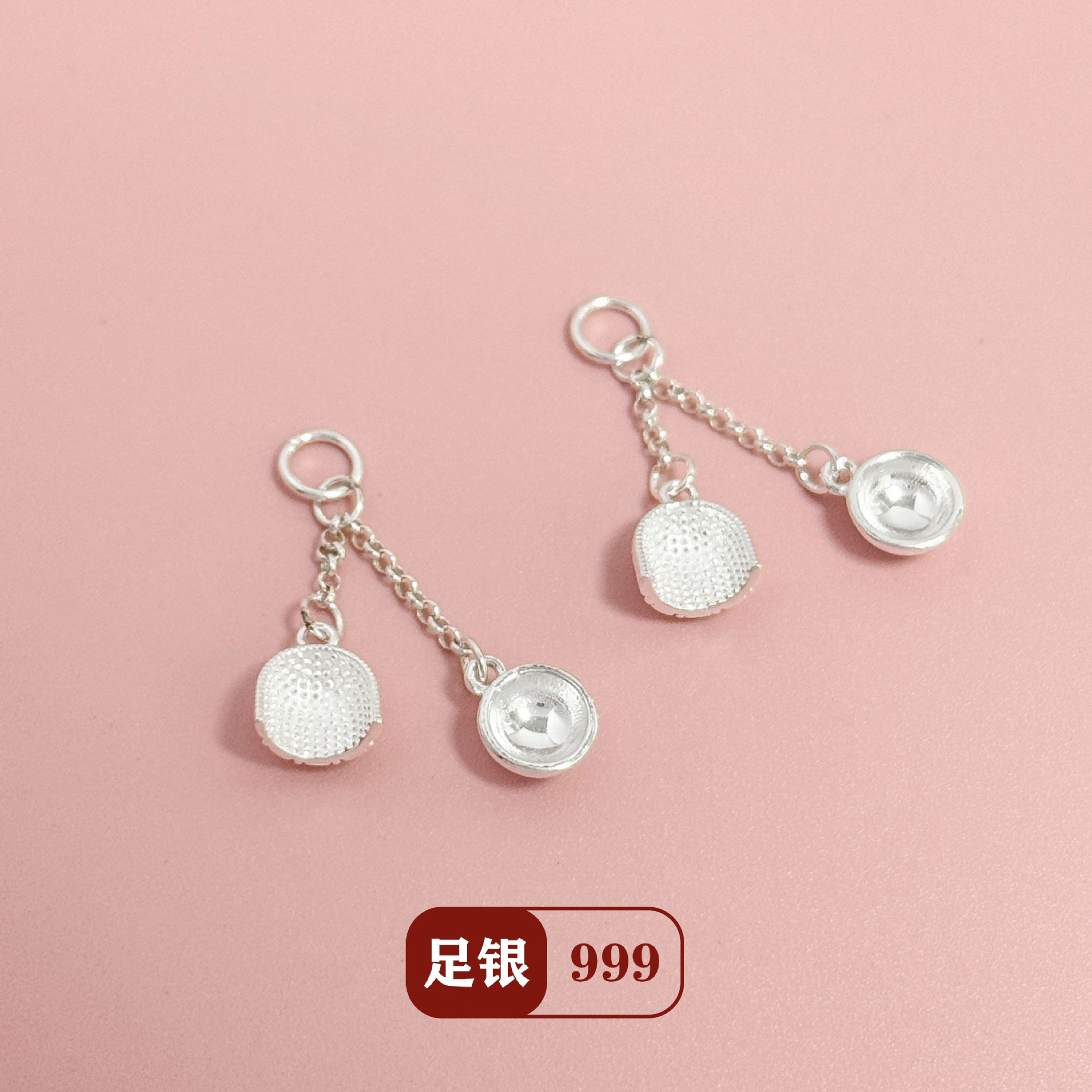 S999 Pure Silver Dustpan Bowl Pendant, Chinese Style Bright Silver Pendant, DIY Bracelet, Long Chain, Tail Chain, Braided Rope Accessory