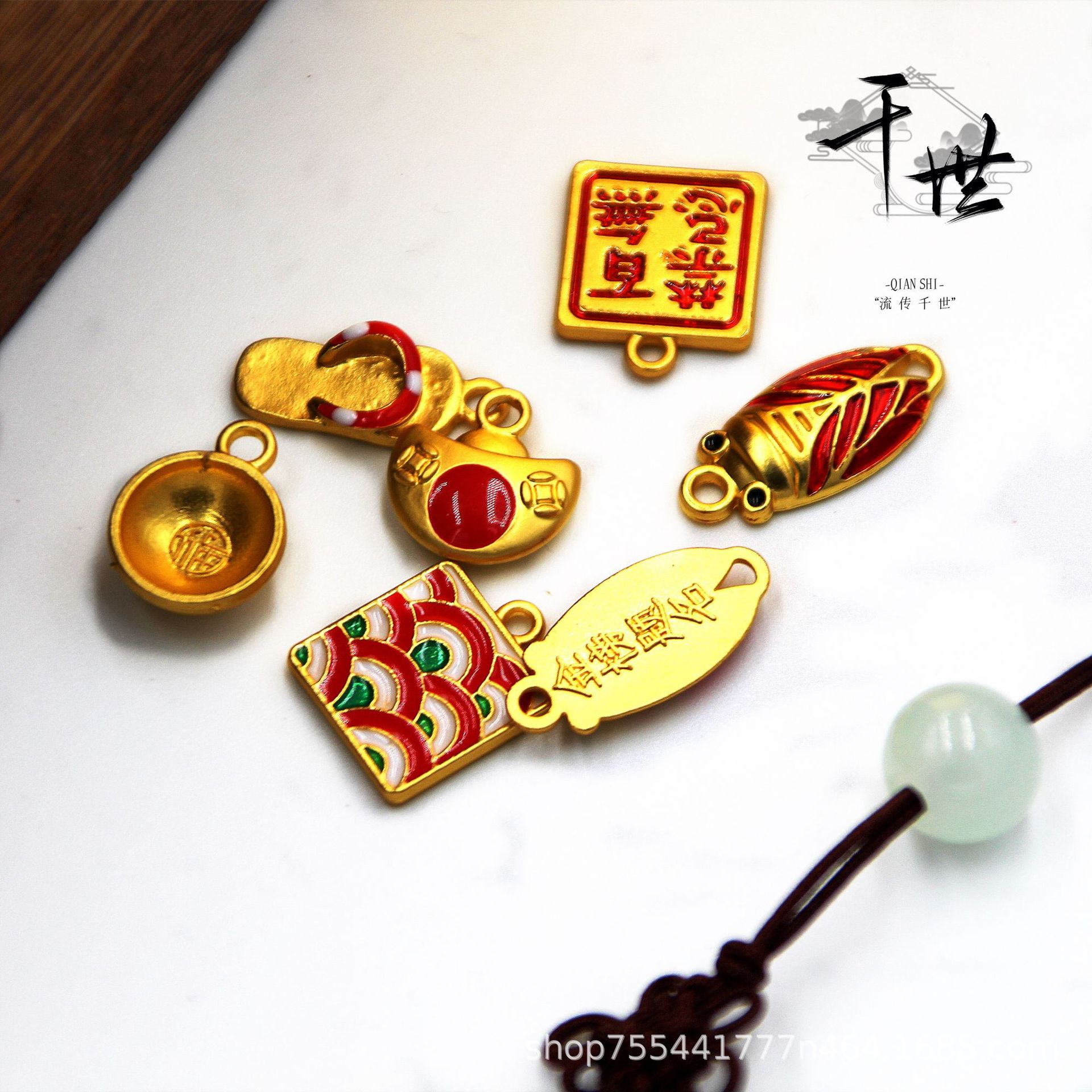 Ancient gold protection color enamel color burning blue blessing Bowl Golden Cicada ingot anti-evil all-taboo pendant pendant diy accessories