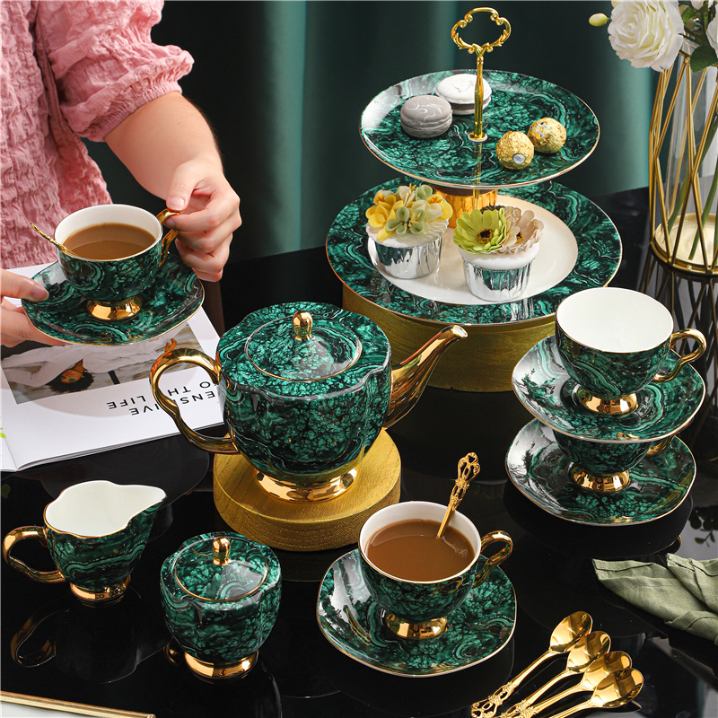 European Style Light Luxury Jewel Green Bone China Gold Edge Coffee Set Ceramic Afternoon Camellia Tea Set Coffee Cup and Saucer Gift Set