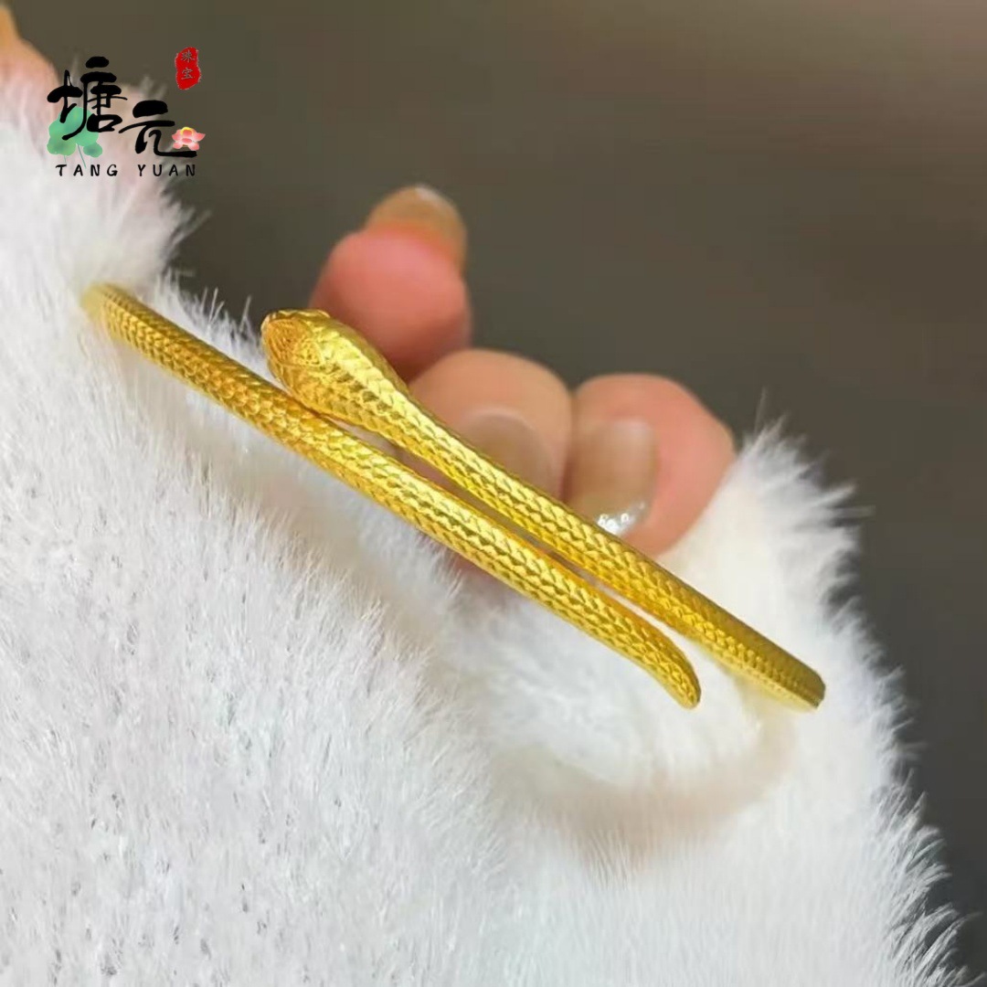 Gold-Plated Snake Bracelet and Ring Set, Trendy Copper Snake-Shaped Adjustable Ring