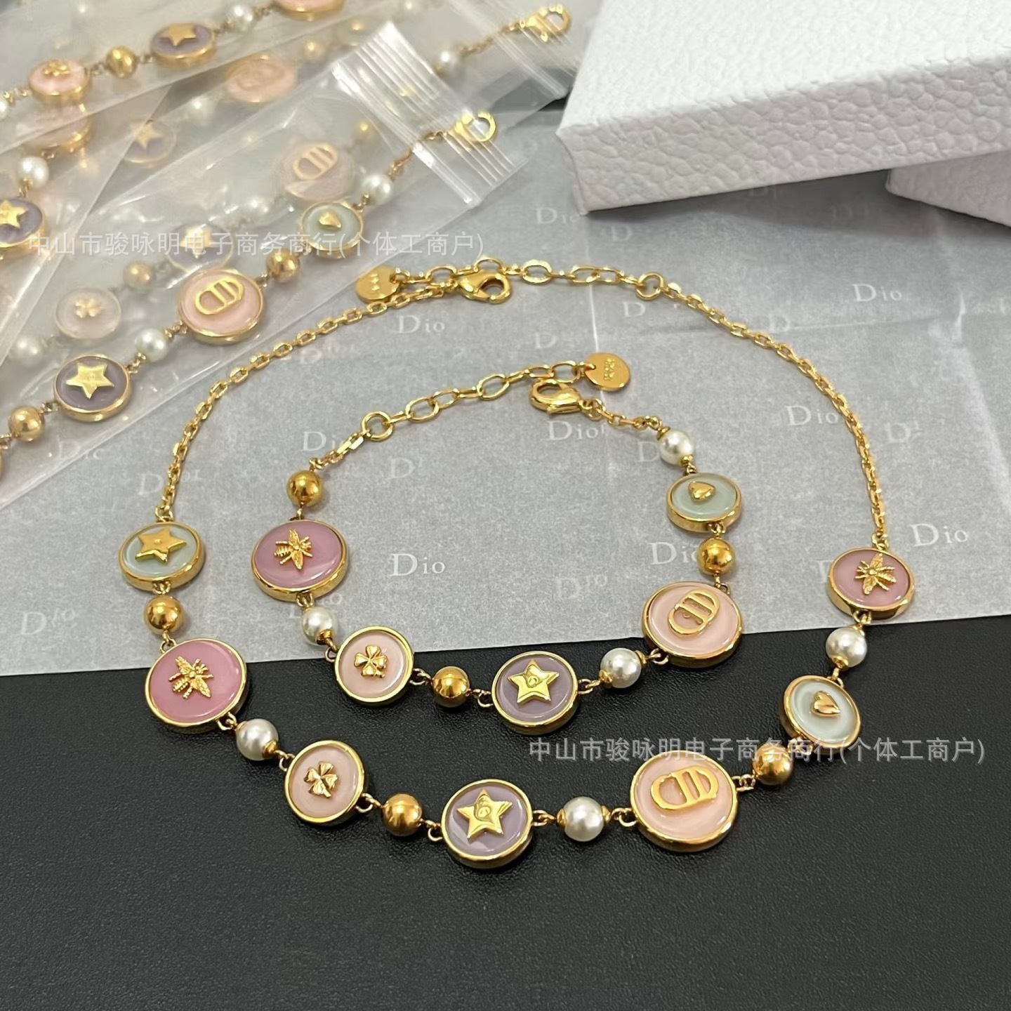 Dijia D Family Set Colorful Disc Bee Star Macaron Color Necklace Women's Dopamine Sweet Candy Bracelet