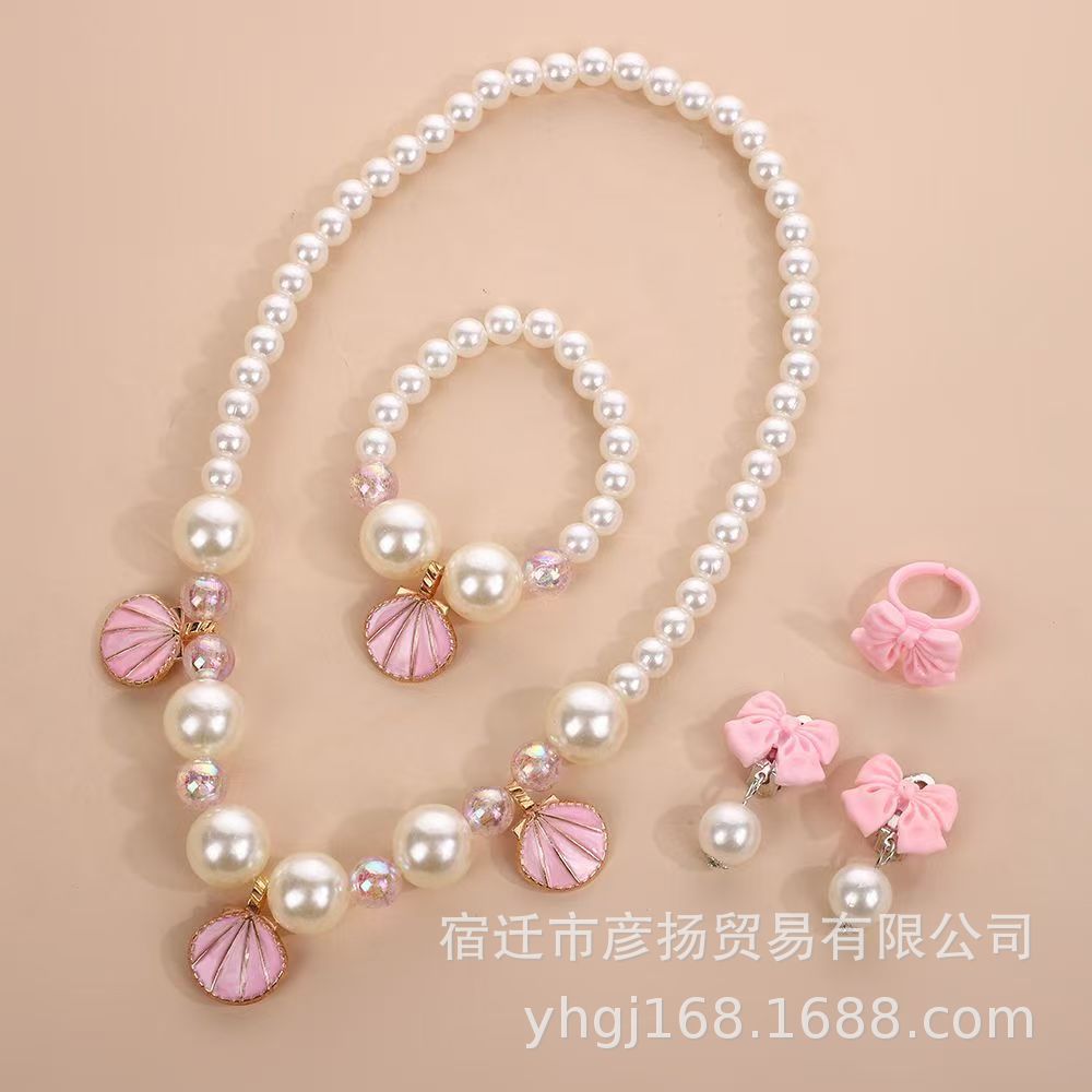 New Children's Fishtail Necklace Bracelet Cross-Border Jewelry Set Plate Bead Pearl Necklace Cartoon Pearl Shell Wholesale