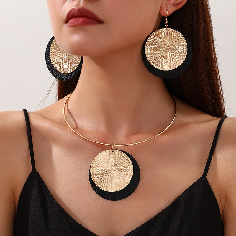 European and American New Style French Semicircle Texture Design Earrings and Necklace Set Classical Retro Earrings and Necklaces Wholesale Trend