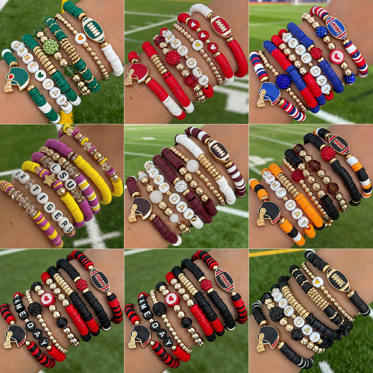Super Bowl Game Day Bracelet Set Game Day Colorfulful Football Soft Pottery Elastic Bracelet for Women European and American Cross-Border