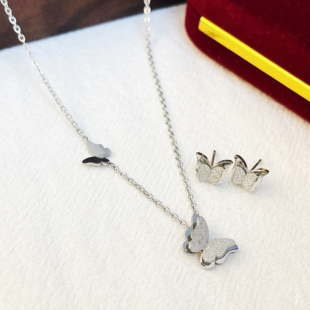 Titanium Steel Design Personality Metal Butterfly Necklace Clavicle Chain suit Mori Super Fairy Double Disc Neck Chain Set Chain Niche
