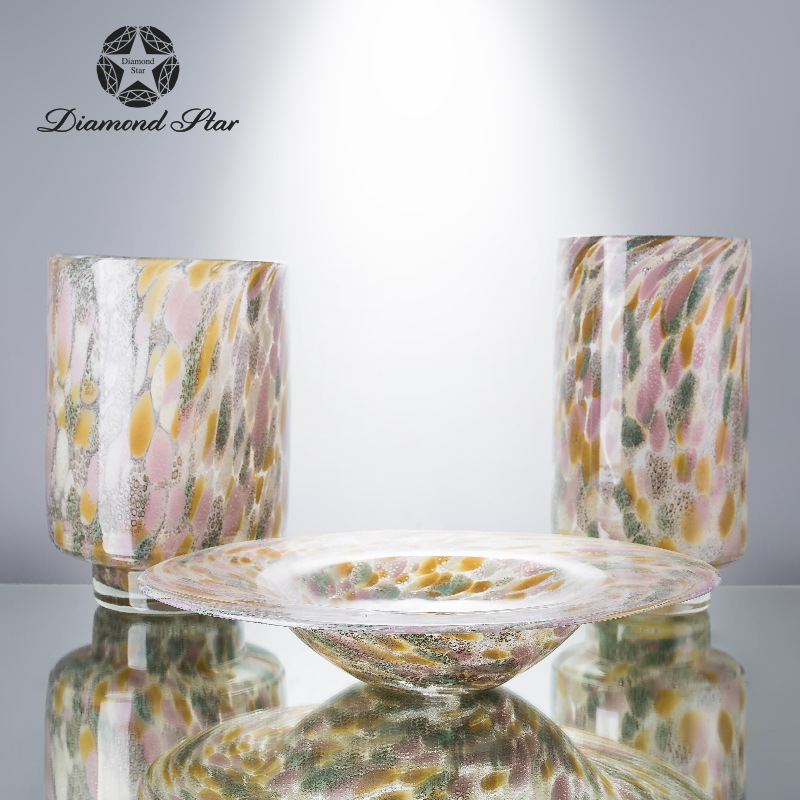 Diamond Star Glass Vase Creative Colorful High Sense Vase Fruit Plate suit Wholesale Home Ornaments Vase