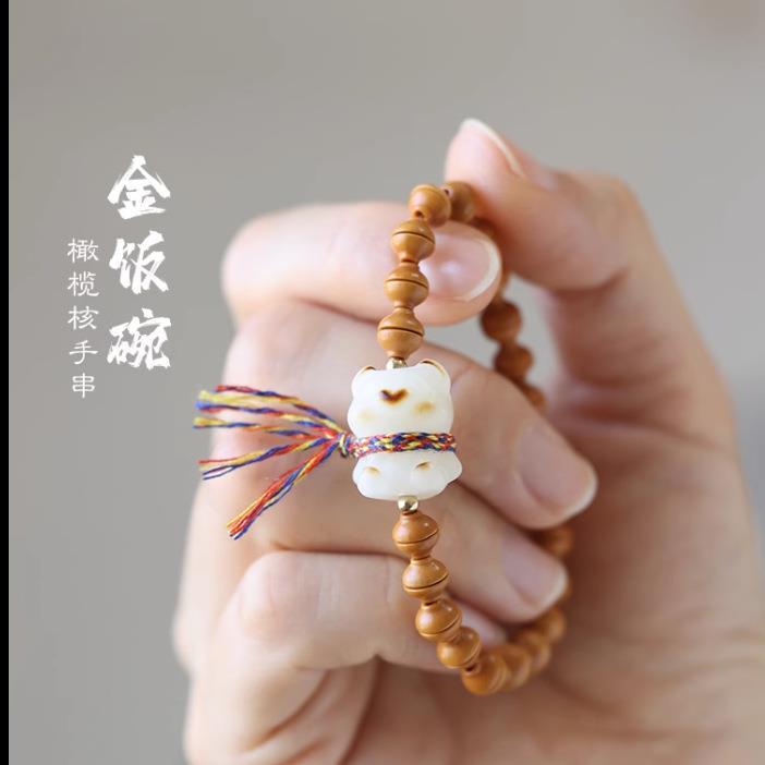 Olive Kernel Bowl Bead Handstring Bodhi Root Charcoal Burned Bear Single Circle Bracelet Female Male Niche Artistic Good Small Jewelry