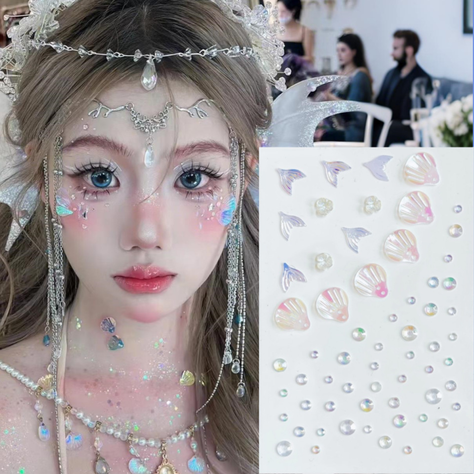 New Mermaid Makeup Shell Pieces Fishtail Three-Bowl Flower Diamond Stickers Mermaid Princess Makeup Eye Corner Face Makeup Stickers