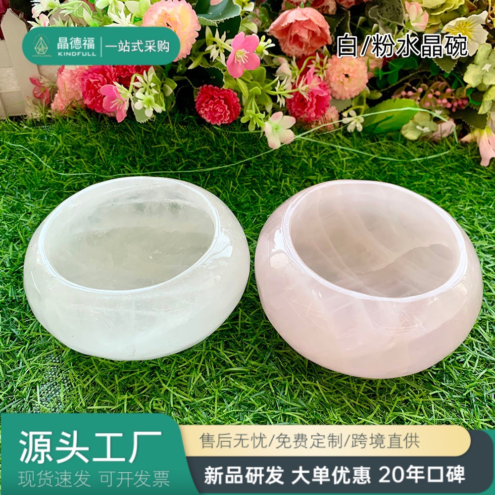 Natural Crystal White Crystal Pink Crystal Demagnetization Bowl Storage Crystal Gravel Utensil Bracelet Purification Bowl Manufacturer Wholesale