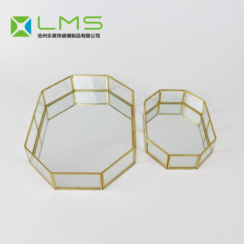 Glass jewelry jewelry storage box geometric glass greenhouse brass storage tray European cosmetic tray
