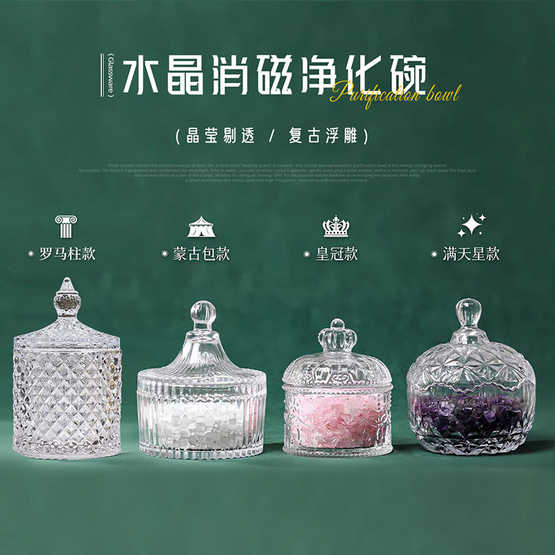 Crystal Demagnetizing Bowl Ornaments Bracelet Jewelry Container Storage Box Demagnetizing Stone Container Glass Jar Sugar Jar Ready Wholesale
