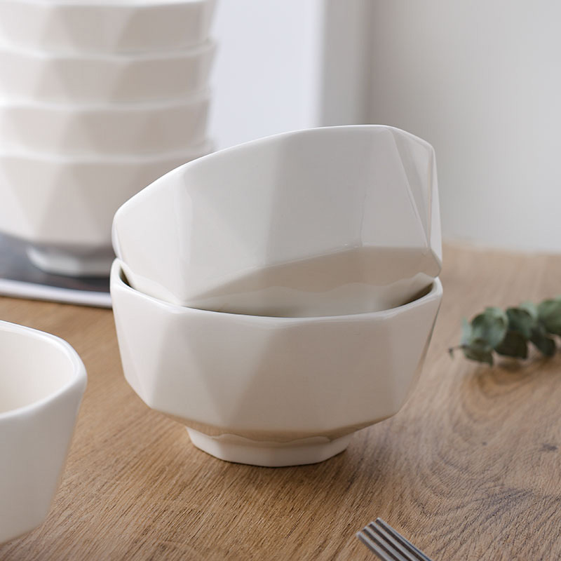 Casual Soup Bowl Noodle Bowl Restaurant Hotel Thickeneded Rice Bowl Can Be Printed with Logo Household Pure White Ceramic Diamond Bowl