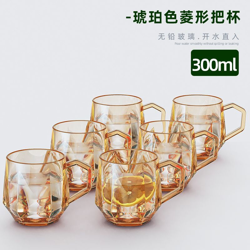 Internet Celebrity Diamond Hexagon Handle Household Advanced Living Room Drinking Water Light Luxury Style Milk Cup Coffee Juice Glass
