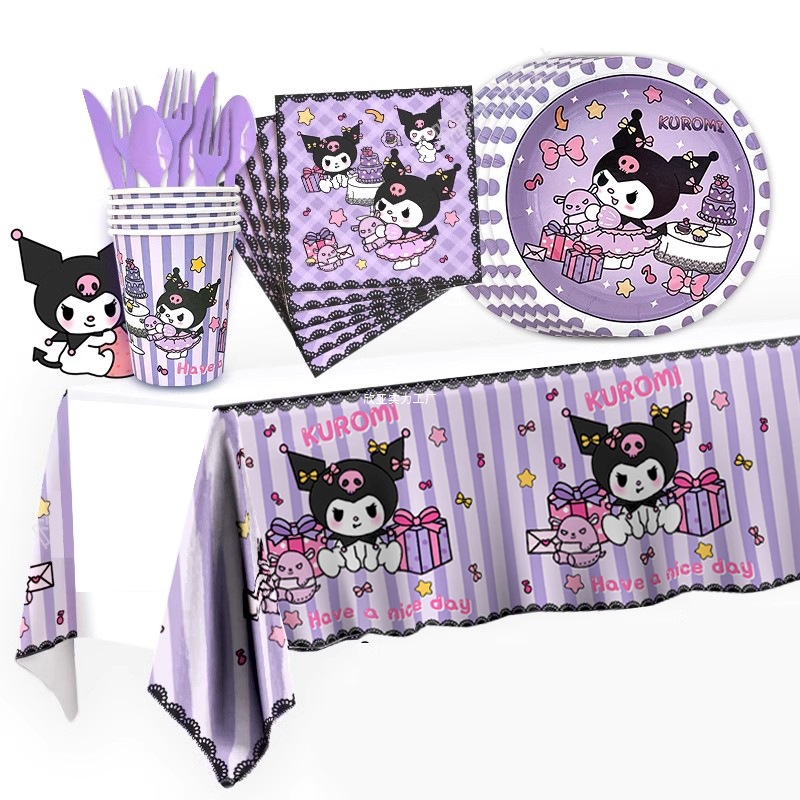 Sanrio Kuromi Children's Birthday Disposable Tableware Cartoon Paper Cup Theme Birthday Party Scene Girl