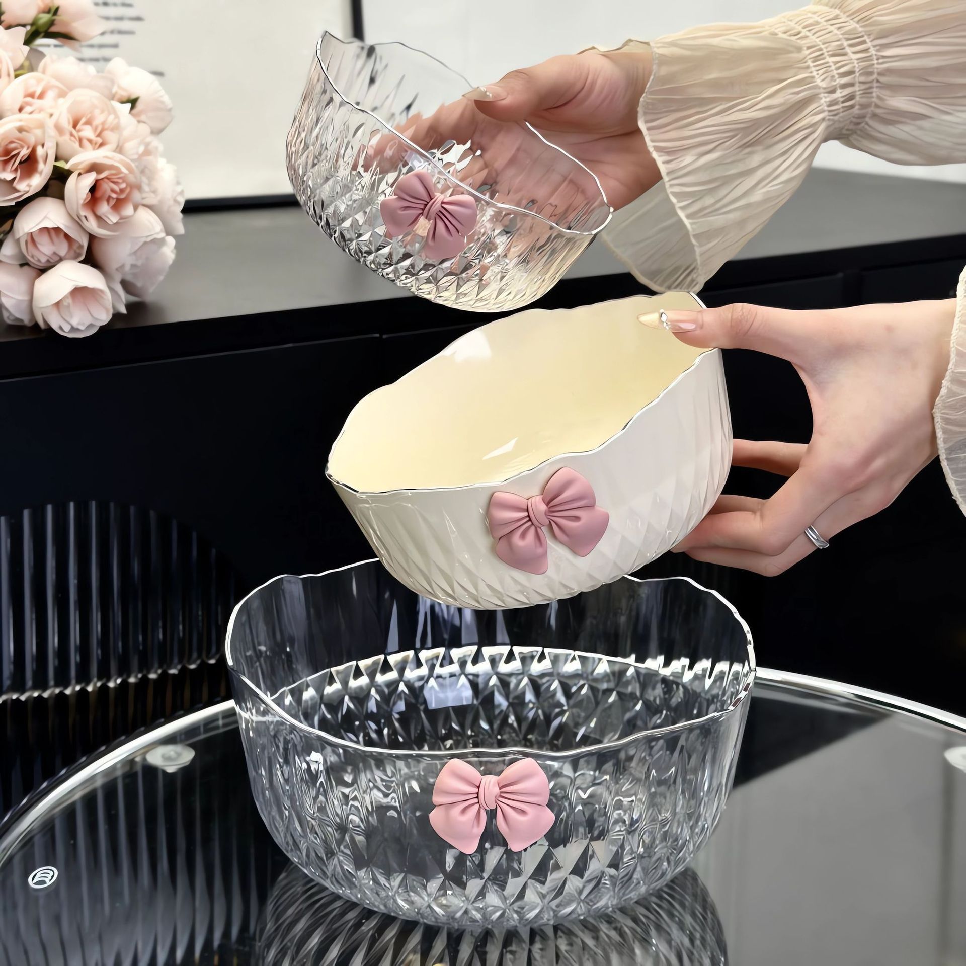 Household Diamond Bowl Dish Plate Household New Internet Celebrity Fruit Plate Japanese Style Creative Steak Dish Plate Dish Wholesale