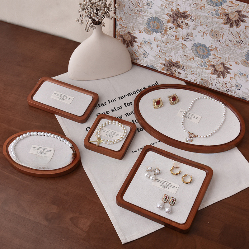 Bracelet Display Linen Photo Prop Tray Bracelet Ornament Jewelry Ring Jewelry Tray Wooden Solid Wood Retro Corner Tray