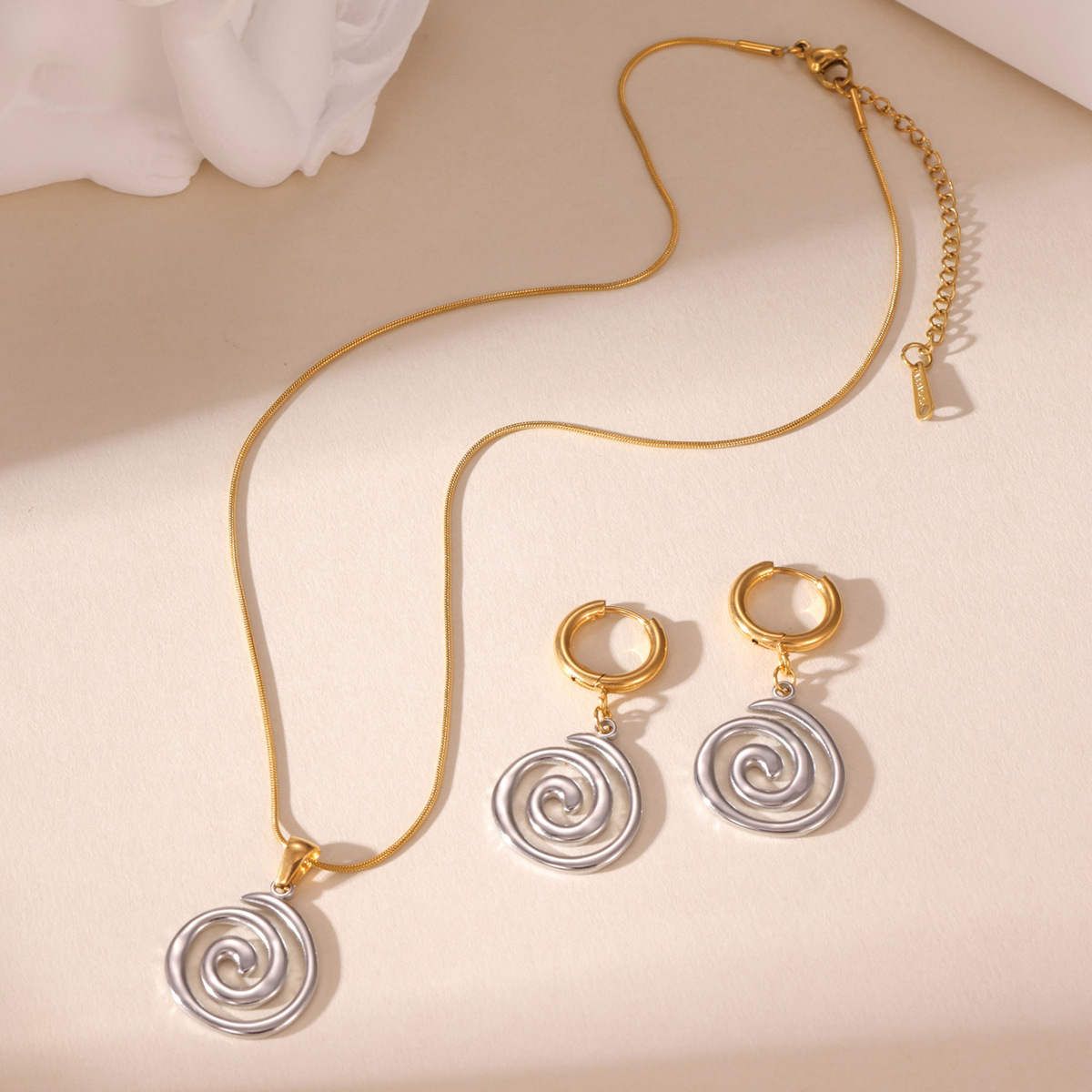 Stainless Steel Mosquito Coil Necklace and Earrings Set for Women, Versatile Daily Temperament Accessories