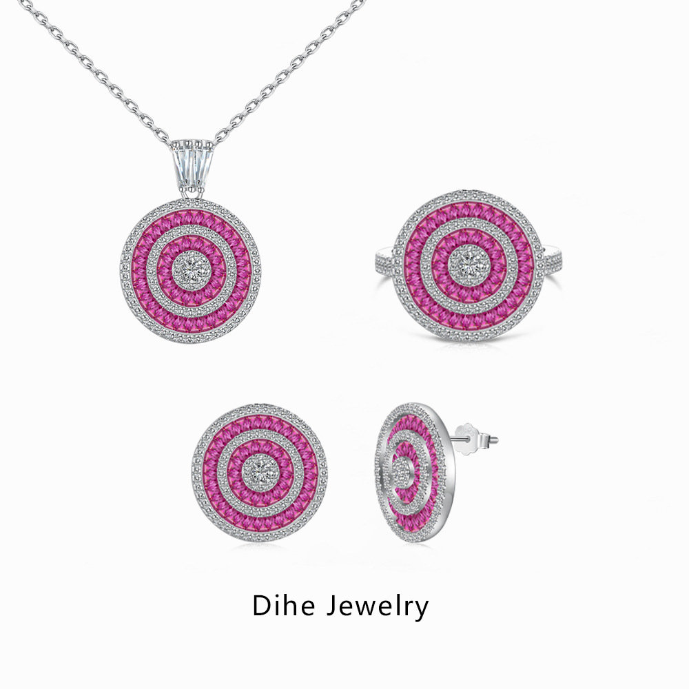 European and American Explosions S925 Sterling Silver Ring Earrings Necklace Women's Disc Full Zircon Inlaid Luxury Wedding Women's suit