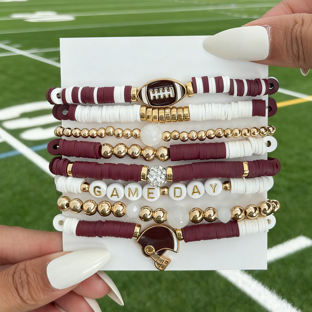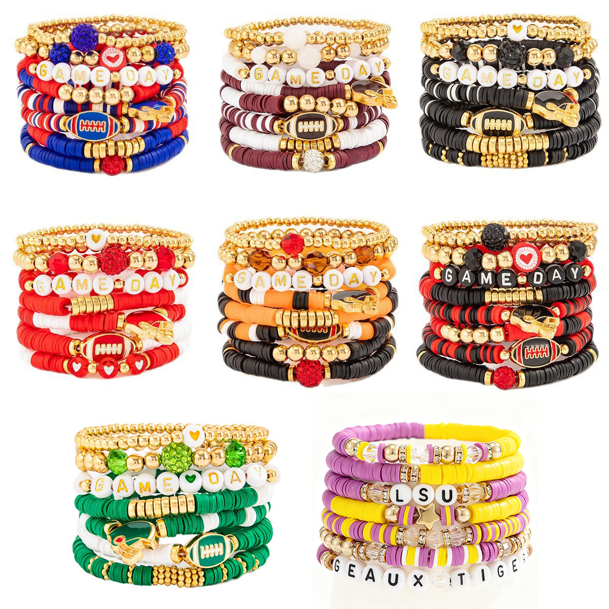 European and American Cross-Border Super Bowl Game Day Bracelet Set Game Day Colorfulful Football Soft Clay Elastic Bracelet