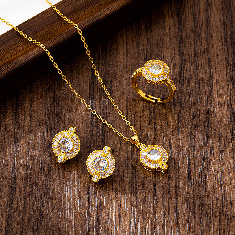 Vietnamese Sand Gold Diamond Disc Necklace Women's Cross-Border High-End Round Earrings Ring Set Elegant Yiwu Jewelry