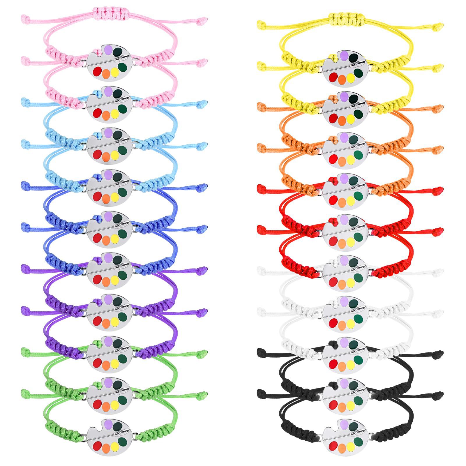 Color Palette Braided Bracelet Color Drawing Board Double Ring Pendant Bracelet Set Ladies Adjustable Handmade Braided Bracelet