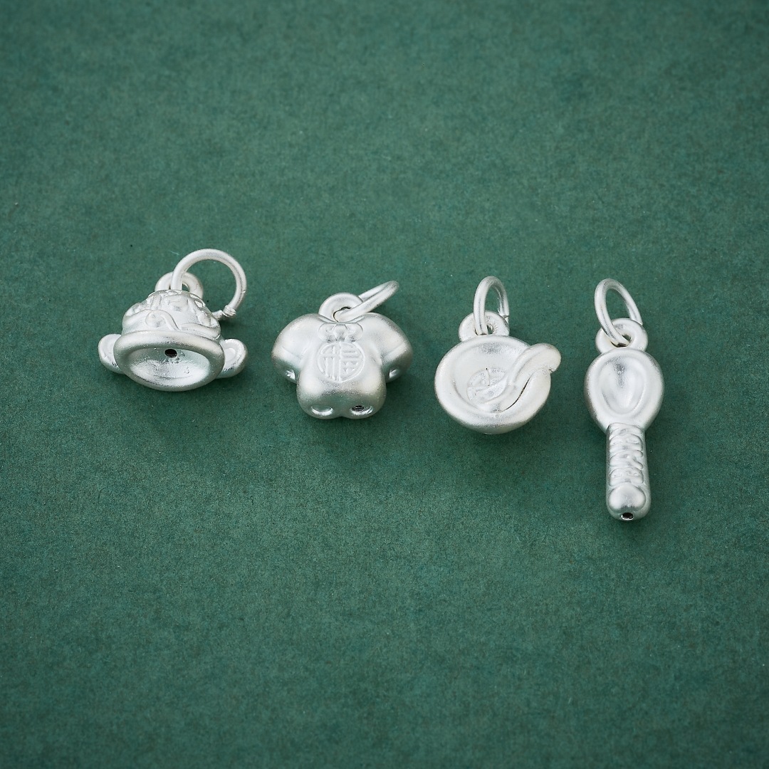 Pure Silver 999 Three Treasures of Wealth and Prosperity Pendant Baby Bracelet DIY Charm Bracelet Pendant Bowl Spoon Clothes Official Hat