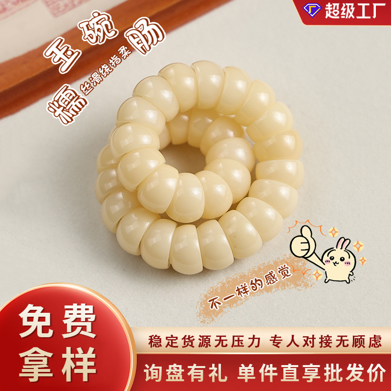 Live Popular Intestine Decompression Bracelet for Women, Wholesale Custard White Jade Bodhi Bowl Intestine Bracelet