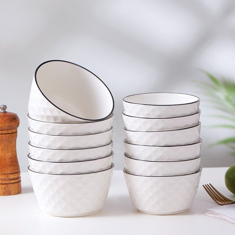 [10 4.5inch Rose Diamond Bowls] Household Ceramic Bowls Rice Bowls Anti-Scalding Household Eating Bowls Pure Color
