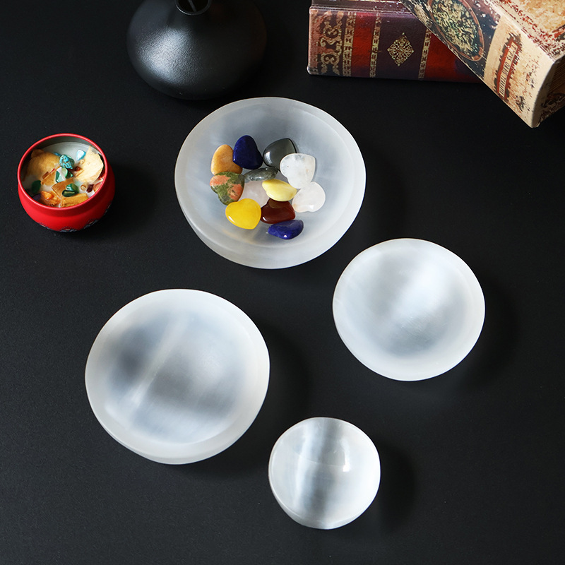 Cross-Border Round Natural Moroccan Gypsum Carving Bowl Degaussing Storage Bowl Selenite Bowl Craft Decoration Ornaments