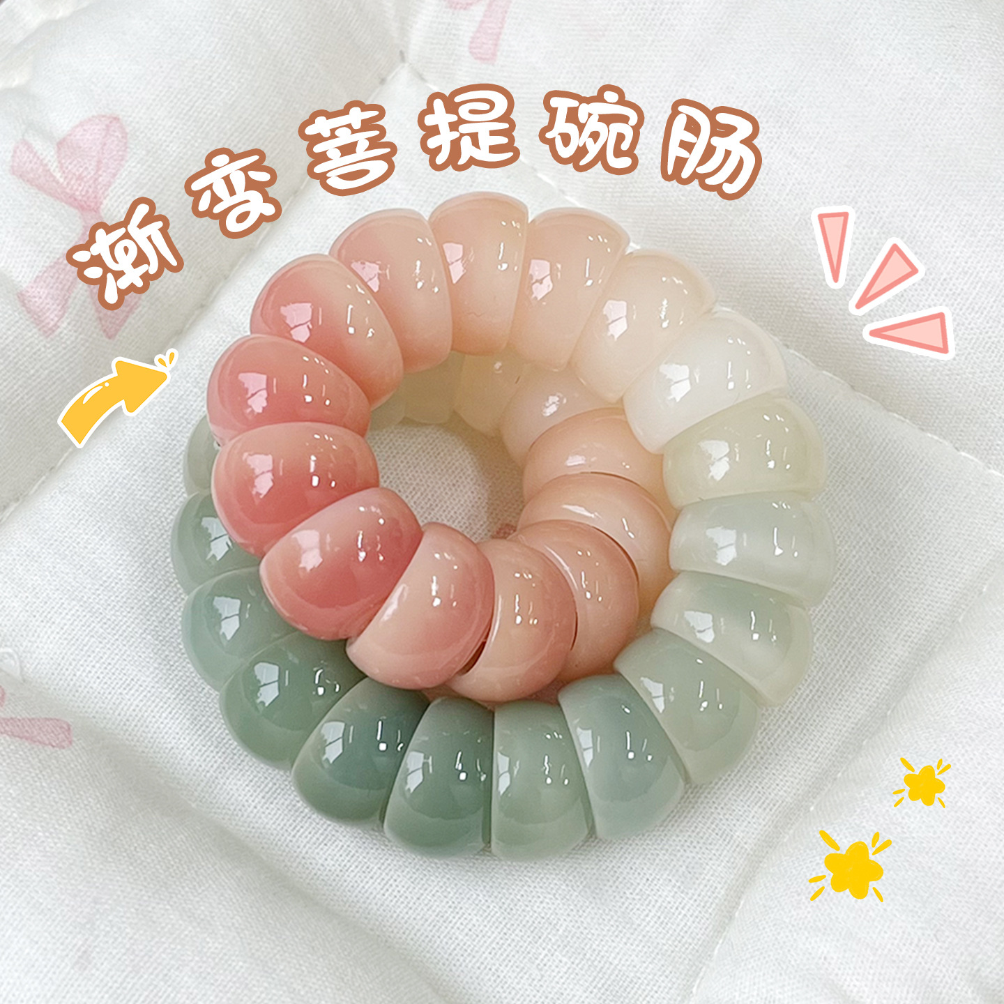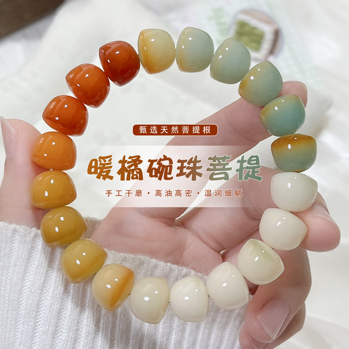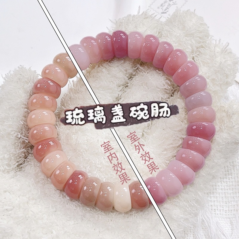 Pink and Green Two-Color Gradient Bodhi Bowl Intestine Bracelet Wrapped Around the Finger, Soft, High-Oil and High-Density Bodhi Seed Student Hand-Held Buddhist Beads