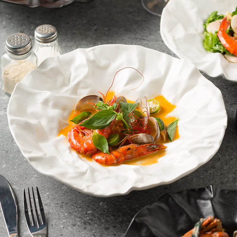Japanese Style Irregular Salah Bowl Pleated Deep Plate French Food Plate High-end Club Cooking Plate Restaurant Display Plate New Style