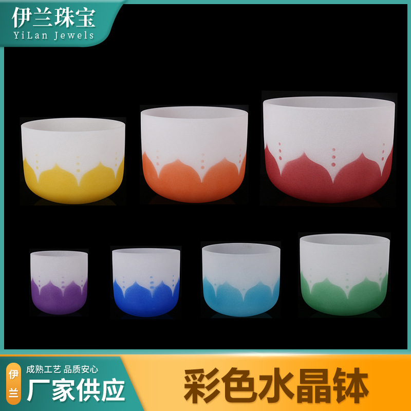 6-14 Inch Lotus Colored Crystal Psalting Bowl Seven Colors Printed Yoga Singing Bowl Sitting Lotus Crystal Bowl
