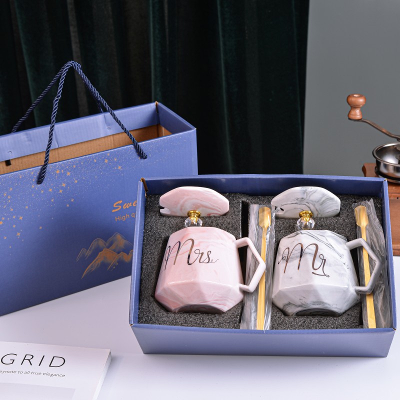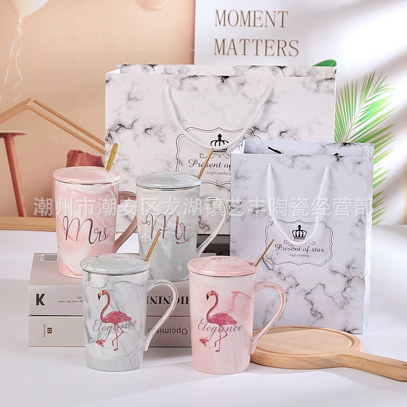 European-style ceramic mug with lid spoon coffee gift couple water Cup jewelry opening wedding gift Cup
