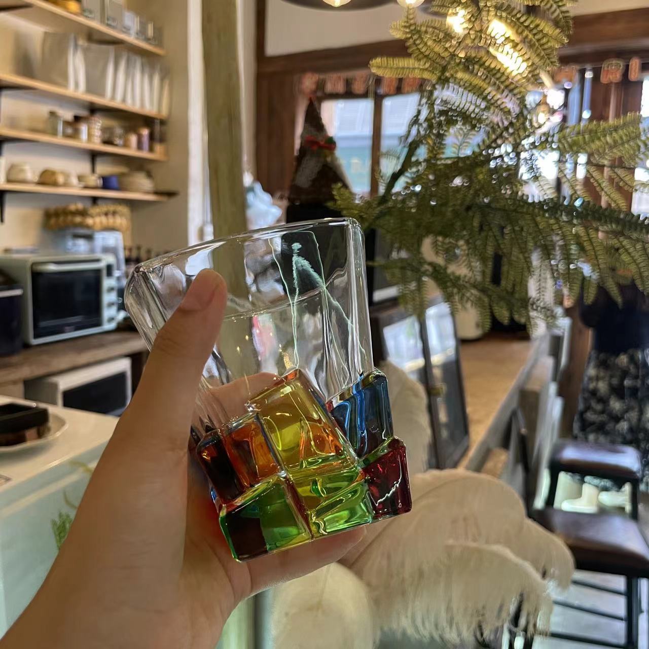 Hand-Painted High-End Blue Gem Ice Cube Glass Whiskey Cup Home Milk Cup High-Looking Niche Water Cup