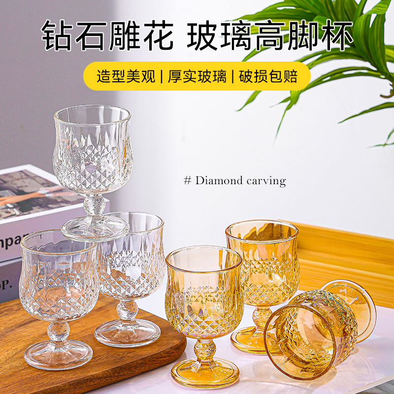 Diamond-Patterned Wine Glass Set, Embossed Tall Glasses, Trendy Wine Glasses for Wine, Champagne, Whiskey, Glassware