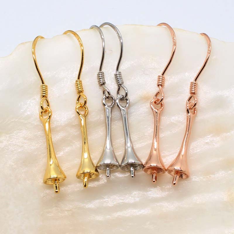 S925 Silver Ear Hook Sticking Pearl Jade Bowl Needle Holder Sticking Plate Horn Ear Hanging Tremella Accessories DIY Earrings Accessories