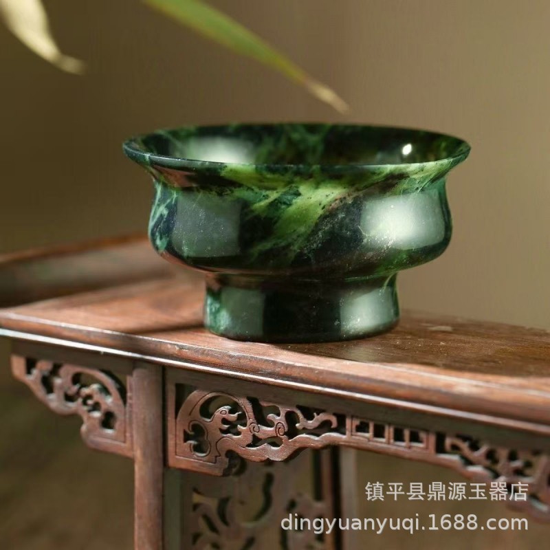 Natural Jade Medicinal Stone Health Bowl, Ink Jade Xizang Bowl, Serpentine Jade Bowl, Health Palace Cup, Strong Magnetic Health Jade Bowl