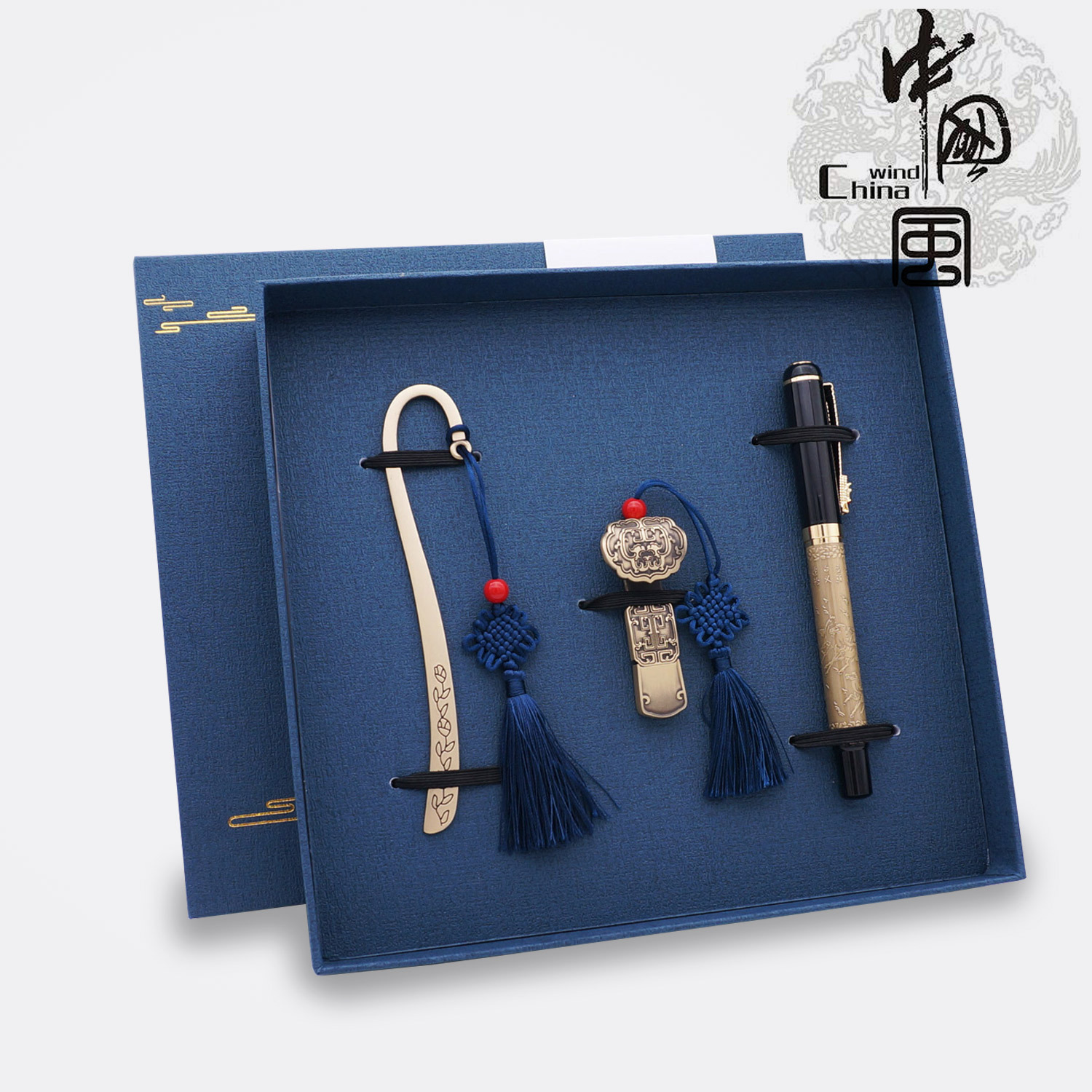 Creative Chinese style retro Ruyi U disk business gift set faucet pen bookmark three-piece set to make logo